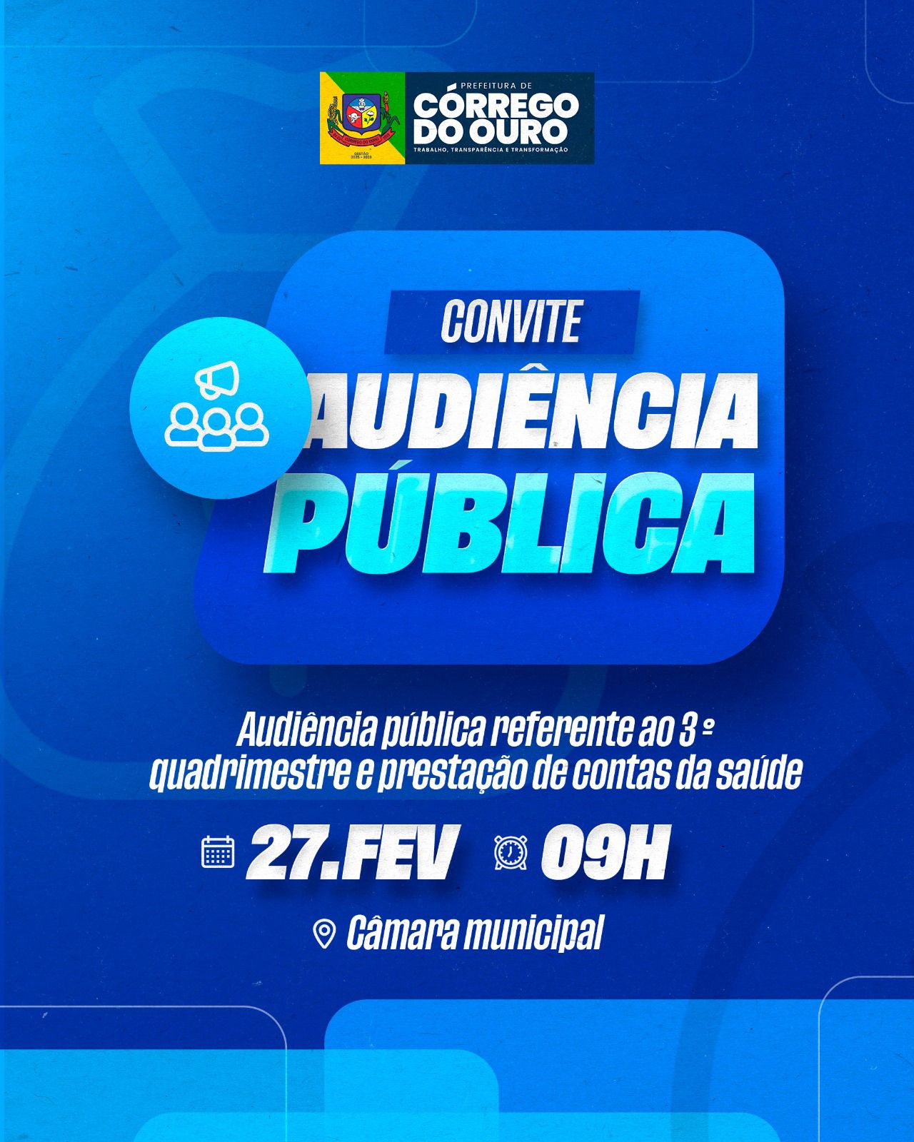 Prefeitura de Córrego do Ouro convida para Audiência Pública de Prestação de Contas da Saúde